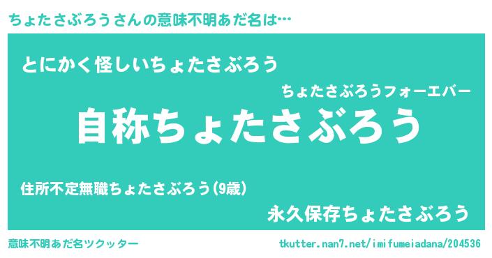 | 肩書あだ名 | 『ちょたさぶろう総統』 |