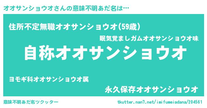 | 男性向けラノベタイトル風あだ名 | 『Re:オオサンショウオから始める異世界生活』 |