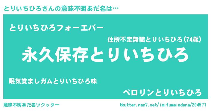 | 男性向けラノベタイトル風あだ名 | 『とりいちひろという概念が存在しない退屈な世界 』 |