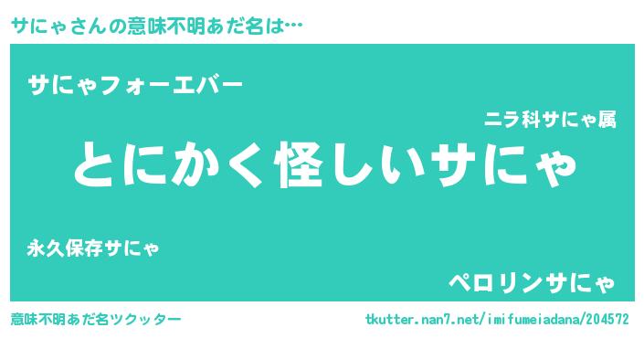 | 男性向けラノベタイトル風あだ名 | 『サにゃの嫁は女の子じゃないと思った?』 |