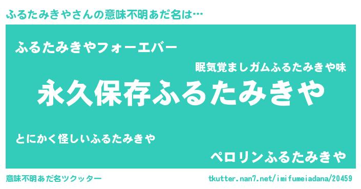 | ヘコむあだ名 | 『ふるたみきや(小並感)』『酢こんぶ』 |