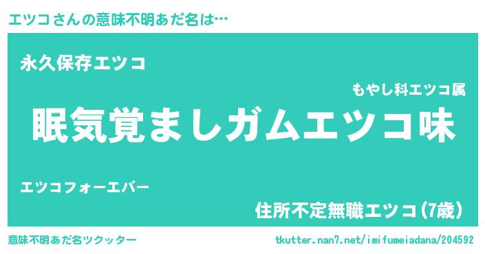 | ヘコむあだ名 | 『エツコ(遠い目)』『牛乳』『エツを』 |