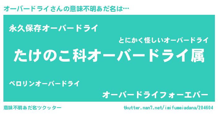 | 胡散臭い通販商品みたいなあだ名 | 『来世でも幸せになれる水素水…その名も「オーバードライ」』 |