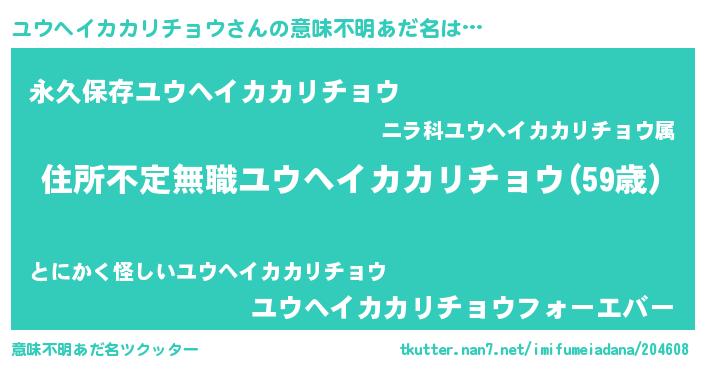 | 男性向けラノベタイトル風あだ名 | 『緋弾のユウヘイカカリチョウ』 |