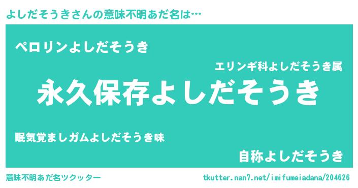 | 可愛いあだ名 | 『よしだそうきママ』『よんよん』 |