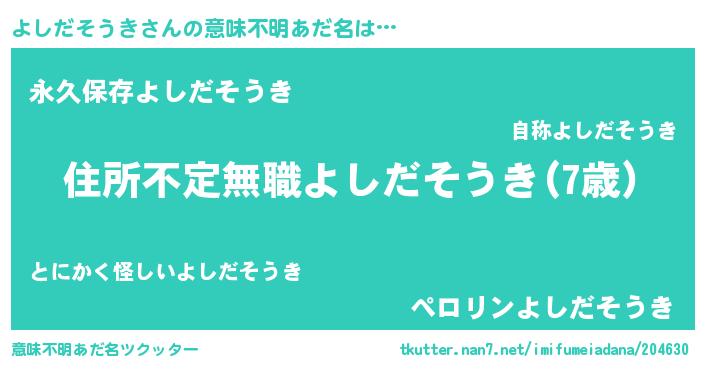 | ヘコむあだ名 | 『よしだそうき(笑)』『よしにー』 |
