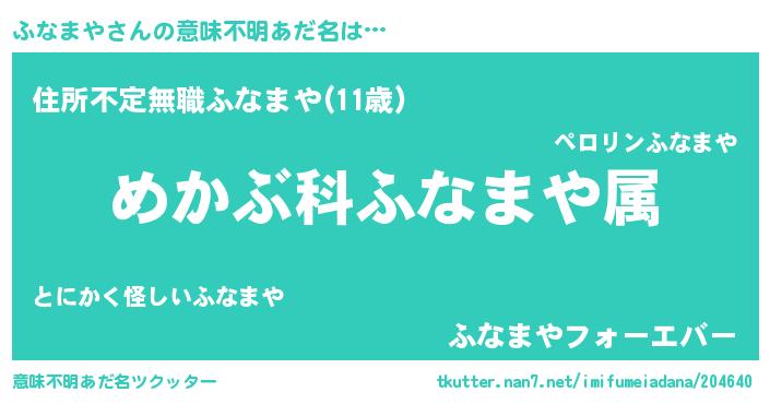 | 男性向けラノベタイトル風あだ名 | 『フナマヤスレイヤー』『ふなまやの憂鬱』 |
