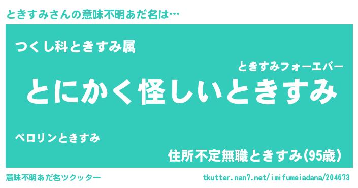 | ポケモン風あだ名 | 『ヒトキスミ』『トキゴンZ』 |