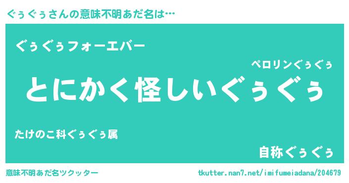 | 2回繰り返すあだ名 | 『ぬれぬれ』『ぐぐぅぅ』『ぐぅぐぅ』 |