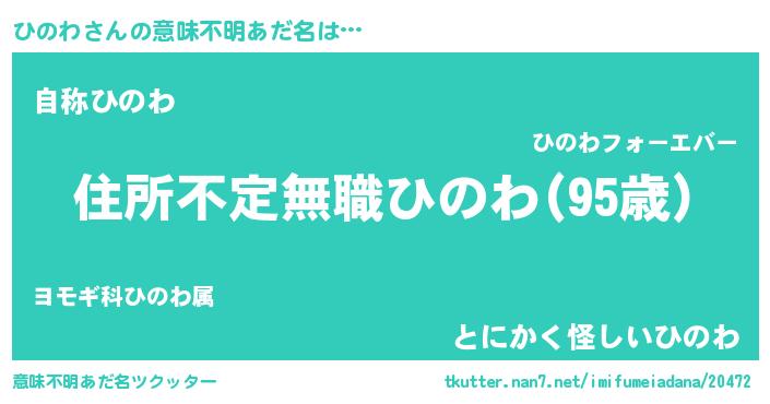 | 欧米人風あだ名 | 『ダレノガレひのわ』『ウサインひのわ』 |