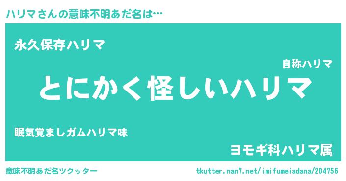 | ヘコむあだ名 | 『ハリっぺ』『ハリマ(遠い目)』 |