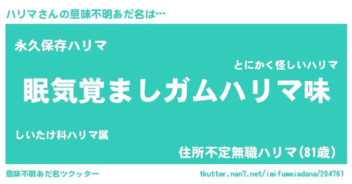 | 男性向けラノベタイトル風あだ名 | 『ノーゲーム・ノーハリマ』 |
