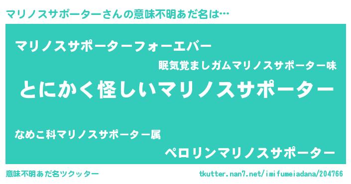 | 男性向けラノベタイトル風あだ名 | 『マリノスサポーターの嫁は女の子じゃないと思った?』 |