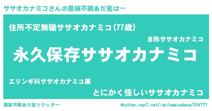 | 胡散臭い通販商品みたいなあだ名 | 『前代未聞の健康食品…その名も「ササオカナミコ」』 |