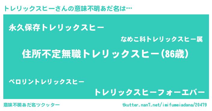 | ヘコむあだ名 | 『トレリックスヒー(震え声)』『酢こんぶ』 |