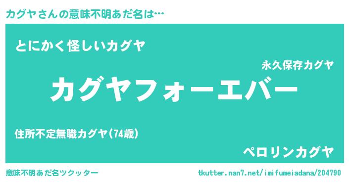 | 欧米人風あだ名 | 『カグヤクリステル』『ウサインカグヤ』 |