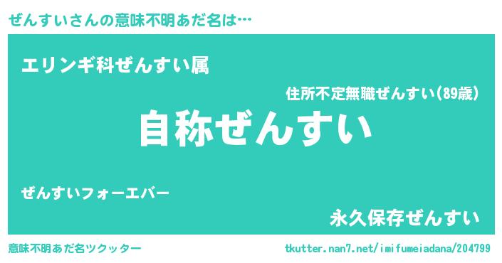 | 男性向けラノベタイトル風あだ名 | 『Re:ぜんすいから始める異世界生活』 |