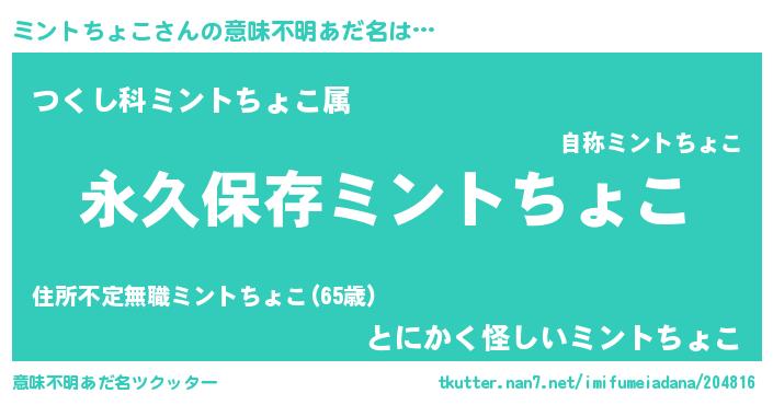 | 胡散臭い通販商品みたいなあだ名 | 『来世でも幸せになれる健康食品…その名も「ミントちょこ」』 |