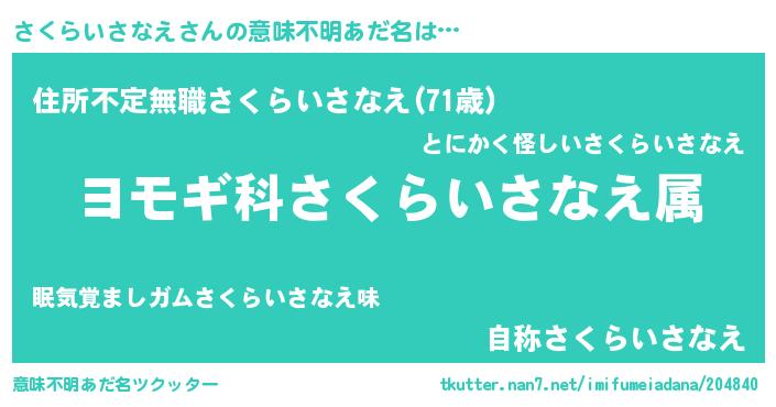 | 欧米人風あだ名 | 『アンジェラ・さくらいさなえ』 |