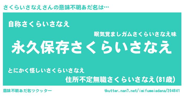 | ヘコむあだ名 | 『さくらいさなえ(震え声)』『さくっちょ』 |