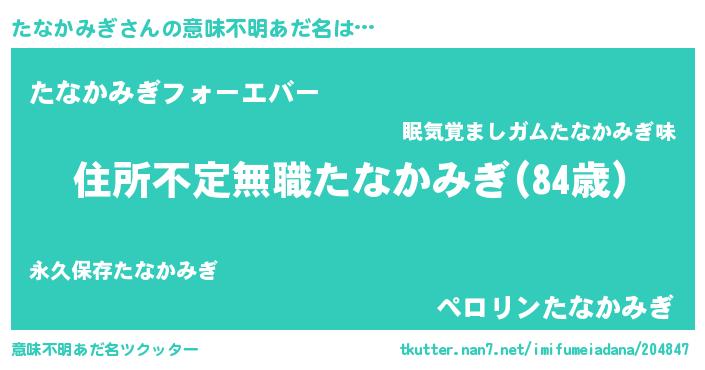 | 男性向けラノベタイトル風あだ名 | 『この素晴らしい世界にたなかみぎを!』 |