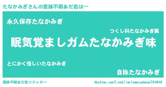 | 料理風あだ名 | 『たなかみぎのトマト煮』 |