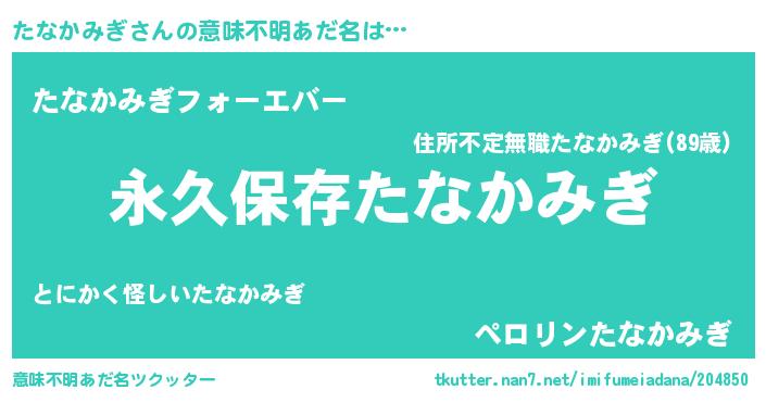 | 男性向けラノベタイトル風あだ名 | 『たなかみぎという概念が存在しない退屈な世界 』 |