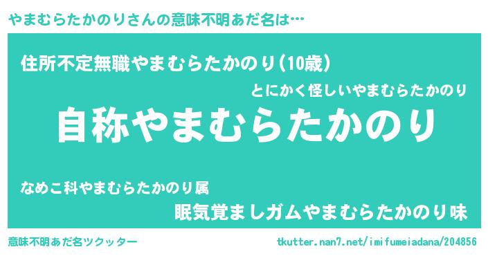 | 女子向けラノベタイトル風あだ名 | 『闇のやまむらたかのり』 |