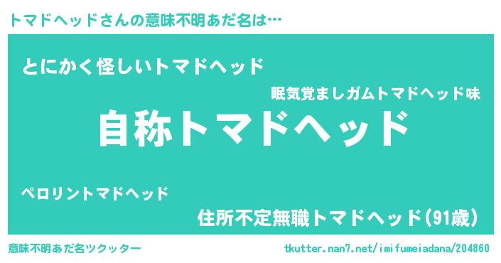 | 男性向けラノベタイトル風あだ名 | 『魔法科高校のトマドヘッド』 |