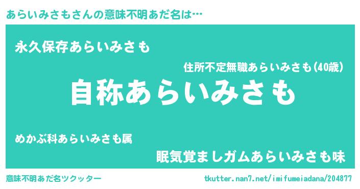 | ヘコむあだ名 | 『あらいみさも(苦笑)』『あらっ子』 |