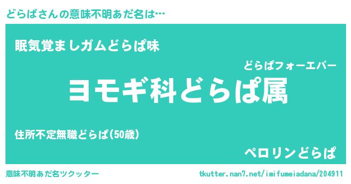 | ヘコむあだ名 | 『どらもー』『牛乳』『どらぱ(笑)』 |