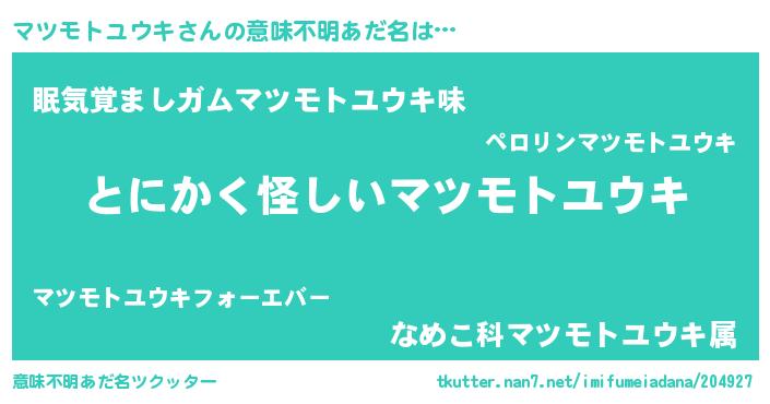 | ヘコむあだ名 | 『マツ太郎』『マツっふぃ~』 |
