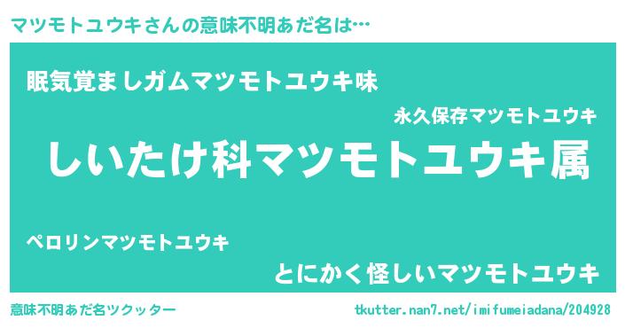 | 欧米人風あだ名 | 『トリンドルマツモトユウキ』 |