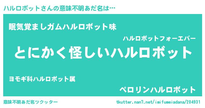 | 男性向けラノベタイトル風あだ名 | 『ハルロボットの嫁は女の子じゃないと思った?』 |