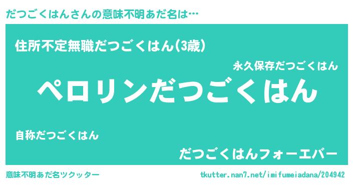 | ヒーロー風カッコイイあだ名 | 『スーパーダツゴクハン』『仮面ダツダー』 |