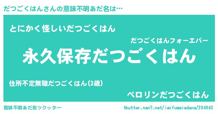 | 男性向けラノベタイトル風あだ名 | 『だつごくはんという概念が存在しない退屈な世界 』 |