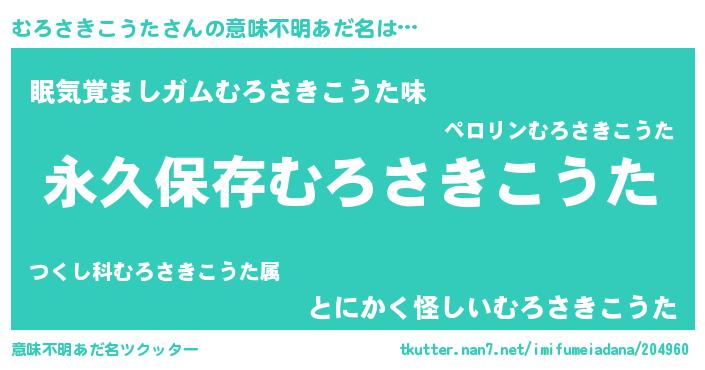 | 胡散臭い通販商品みたいなあだ名 | 『来世でも幸せになれる水素水…その名も「むろさきこうた」』 |