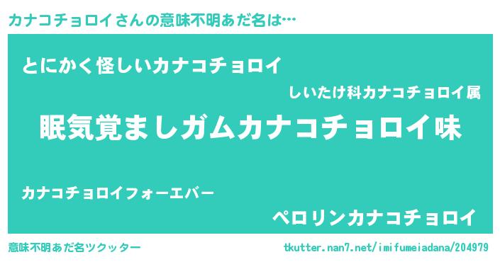 | ヒーロー風カッコイイあだ名 | 『慈愛の使者カナコチョロイ』 |