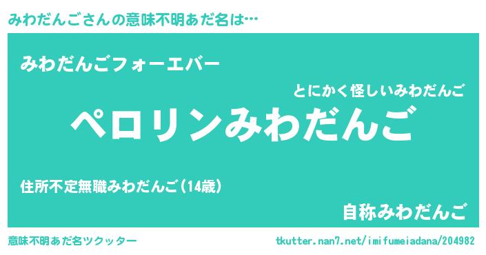 | 欧米人風あだ名 | 『アンジェラ・みわだんご』 |