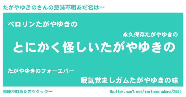 伝説のあだ名 | 『解き放たれた遊び人たがやゆきの』 |