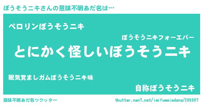 | 胡散臭い通販商品みたいなあだ名 | 『信頼と実績のペンダント…その名も「ぼうそうニキ」』 |