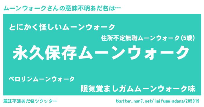 | 胡散臭い通販商品みたいなあだ名 | 『来世でも幸せになれる水素水…その名も「ムーンウォーク」』 |