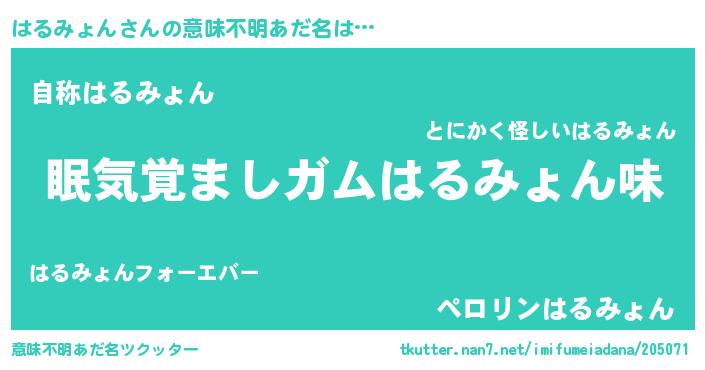 | 欧米人風あだ名 | 『アンジェラ・はるみょん』 |