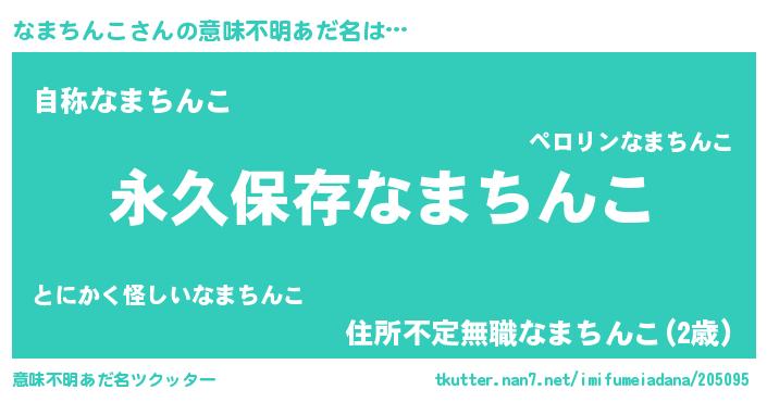 | 男性向けラノベタイトル風あだ名 | 『誰もが恐れるあのなまちんこが、ぼくの専属メイドになるようです。』 |