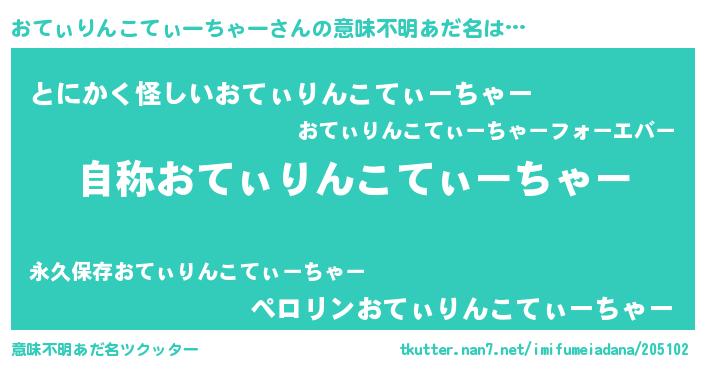 | 女子向けラノベタイトル風あだ名 | 『おてぃりんこてぃーちゃーアンティーク』 |