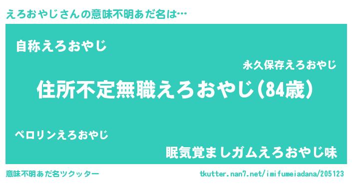 | ヘコむあだ名 | 『えろおやじ(震え声)』『えろもー』 |
