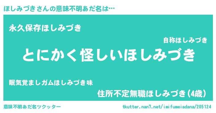 | ポケモン風あだ名 | 『ホシゴンZ』『ヒホシミヅキ』 |