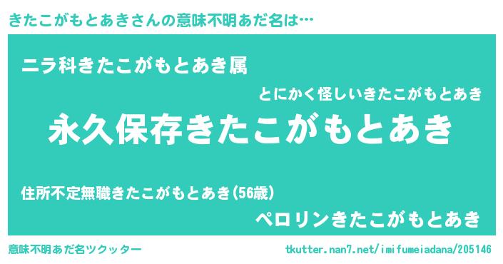 | ヘコむあだ名 | 『きたこがもとあき(笑)』『きたにゅー』 |