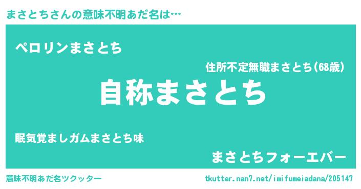 | 男性向けラノベタイトル風あだ名 | 『Re:まさとちから始める異世界生活』 |