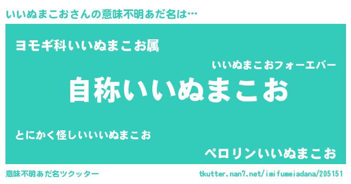 | 欧米人風あだ名 | 『ケンブリッジいいぬまこお』 |